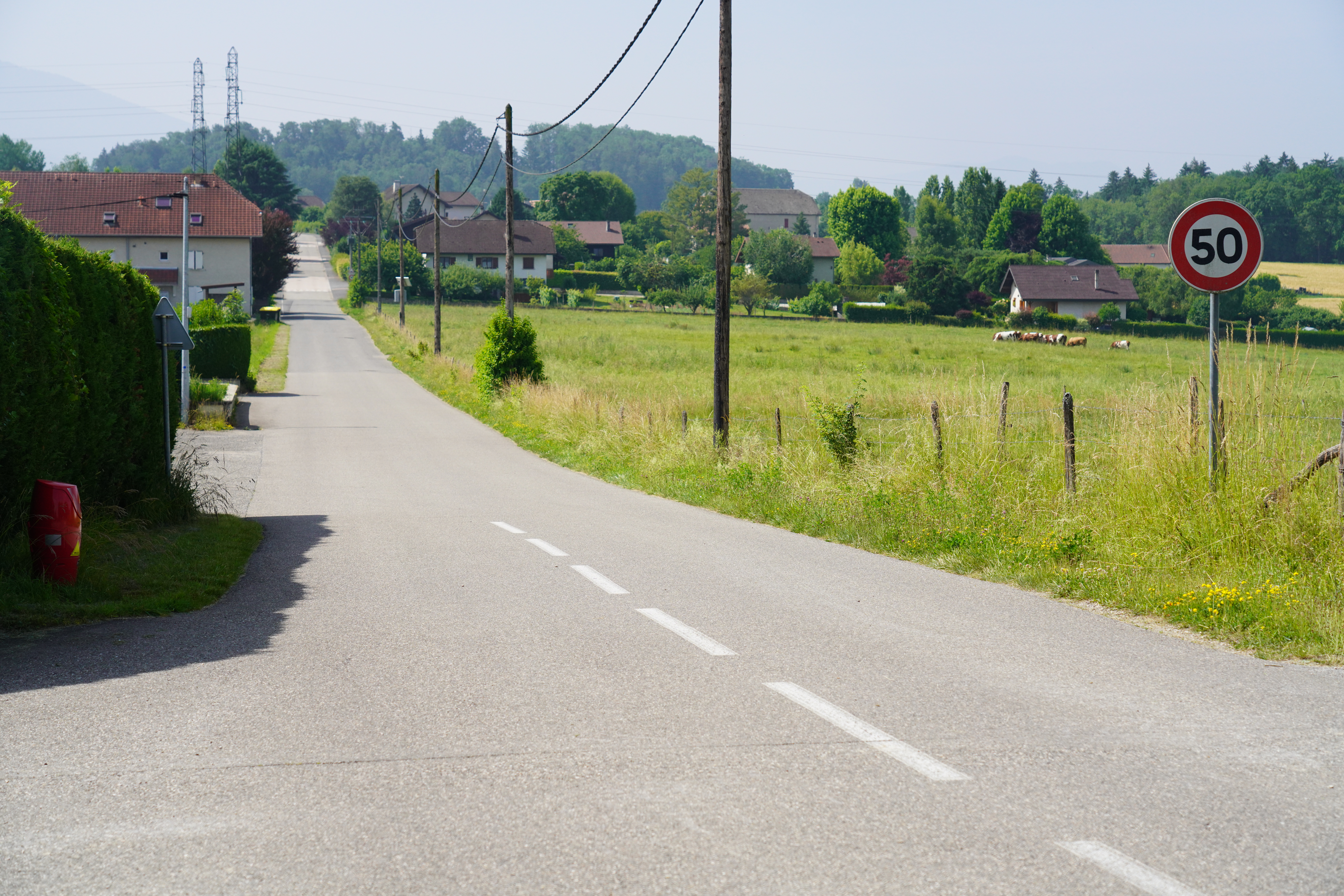 DSC04358 添付元 アヌシー郊外を散歩した 朝、アヌシー中心部のバス停からバスに乗り、終点付近まで行ってそこから歩いた 午後になるにつれて気温が上がりがちなので、朝のうちに散策してみようと思った バス停を降り、近くにあった看板、 看板ですらきれいに見えてしまうのは僕が日本で生まれ育ったからなのか? 非日常という点でもアヌシーはとてもきれいだが、それとは別に... DSC04355 DSC04367
